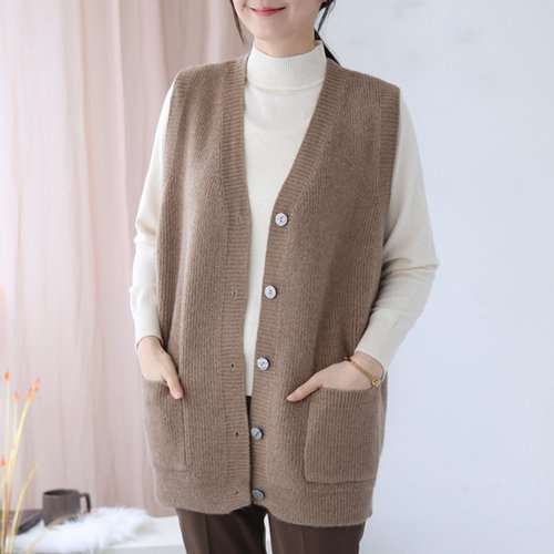 [엄지척]여성 V넥 옆트임 롱 니트 조끼 오버핏 옆트임 베스트_19680900_667501