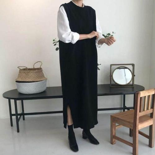 여성원피스 롱 100% 울 조끼 루즈핏 브이넥 오버핏 원피스 나시 민소매 니트 스포M4