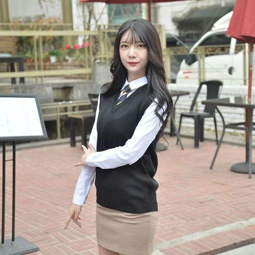 [에이치플러스몰]롱 블랙 여자 여자니트조끼 가디건 니트조끼 교