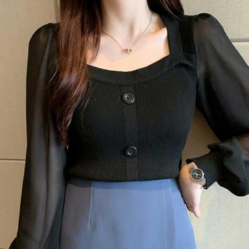 [오너클랜]인기상품 블라우스st 스퀘어넥 쉬폰소매 니트티셔츠 오피스룩 [WECD82E_250917]