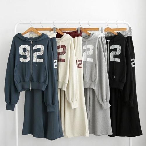 [다잇템][다잇템] 여성 운동 바지 빅프린팅 후디 넓은 롱 주머니 집업과 세트_23329005_588872