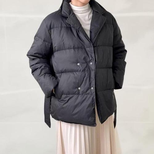 [다잇템][다잇템] 여성 구스다운 리본 혁대 카라 FW 패딩 스트랩 검정 재킷_23196773_588872