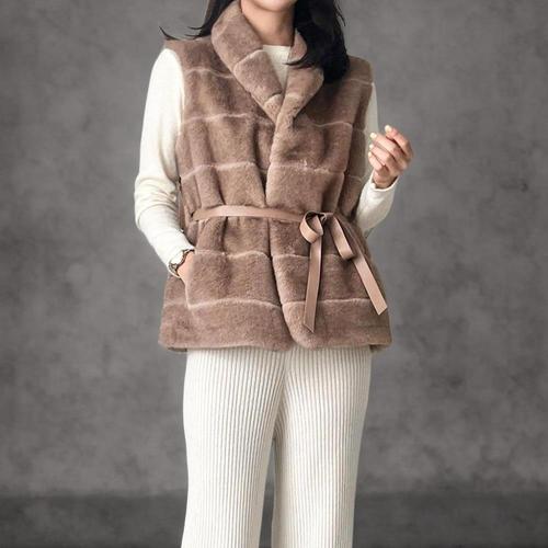 [다잇템][다잇템] 여성 모임룩 인조밍크 허리띠 단가라 연말 리본 조끼_23915499_588872