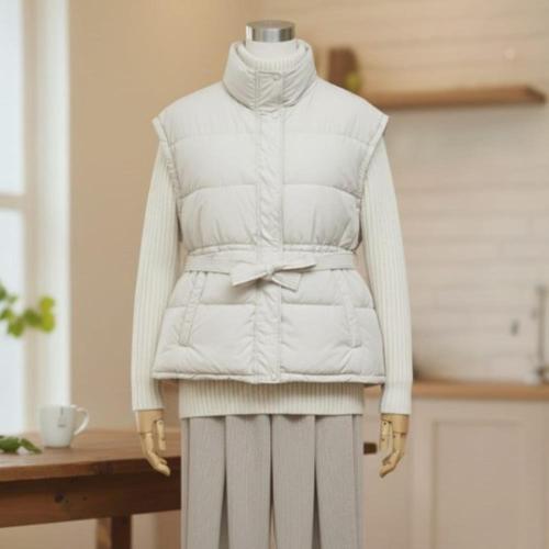 여자 솜패딩 폴라넥 리본벨트 벨티드 패딩조끼