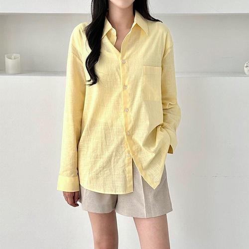 여성 6컬러 여름 앞포켓 린넨셔츠 오버핏 긴팔 남방 WFJIWCM