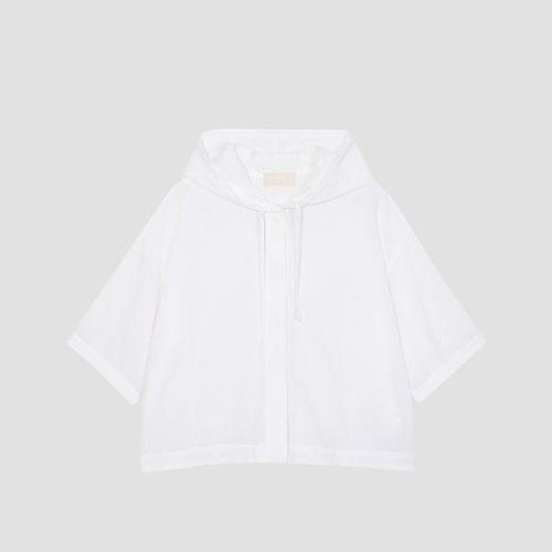 [유닛]린넨 혼방 후드 크롭 반소매 셔츠