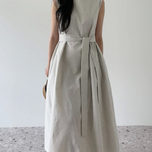 LINEN STRIPE SLEEVELESS LONG DRESS_T513DS507(OV)