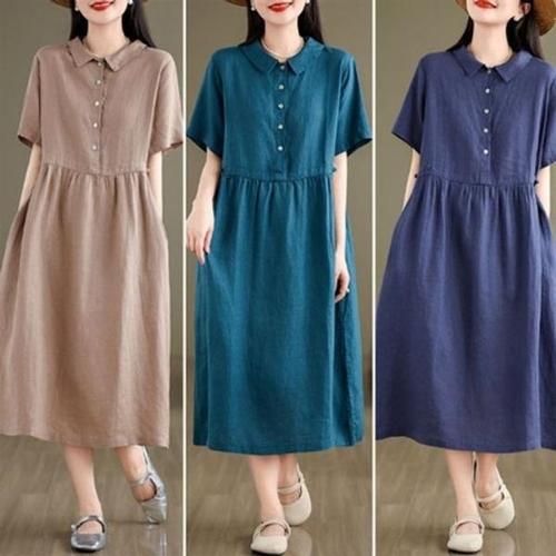 [엄지척]여성 린넨 반팔 롱원피스 셔츠원피스 데일리룩_19951643_667501
