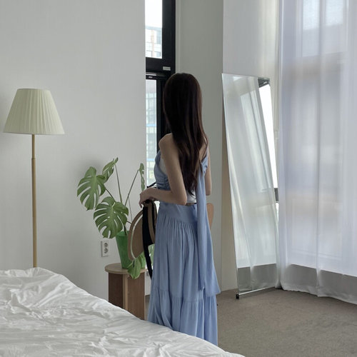 클루이가넷 / 여성용 뒷리본 린넨 롱원피스