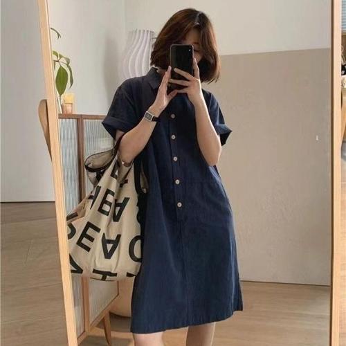 [엄지척]여자 2컬러 반팔 셔츠원피스 단추 카라 린넨면 원피스_19914169_667501