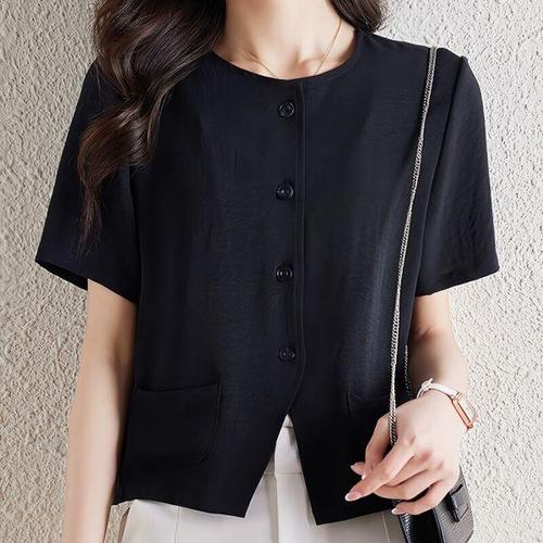 [샵앤]린넨 자수 루즈핏 캡소매 티셔츠 DAI-WSH-0522-블랙