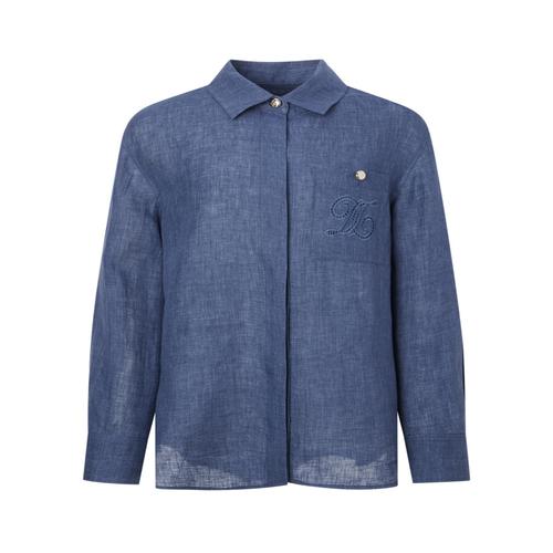 닥스 여성 블루 로고자수 린넨 긴소매셔츠 (DLSH5B403B2)