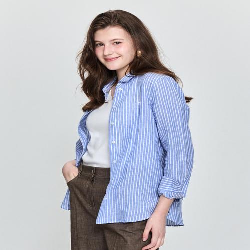 헤지스 여성 린넨 스트라이프 셔츠 블루 (HSSH5BC31B3)
