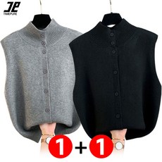 여성 반폴라 니트 조끼 단추 니트베스트 부드럽고 따뜻한 여성 레이어드 1+1 2종 세트