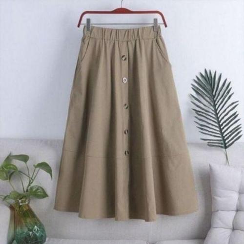 [에이치플러스몰]레이디스 걸 컴포트밴드 롱스커트 바텀스 체형커버 릴랙스핏 롱라인 치마