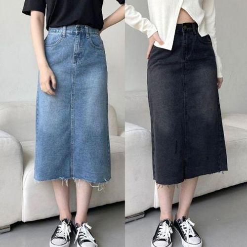 네모엔룩 여성용 듀크워싱 면스판 허리밴딩 H라인 스커트
