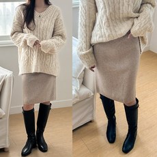 데일리앤 아제마 심플 H라인 밴딩 뒷트임 미디 스커트 가을 겨울 니트치마