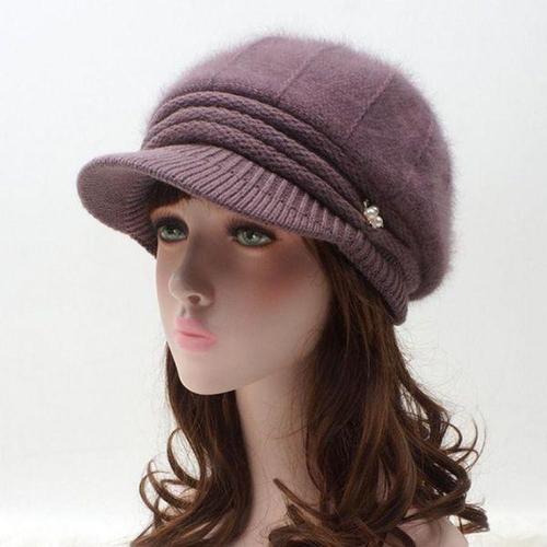 [에이치플러스몰]니트 진주 장식 여성용 챙 달린 모자