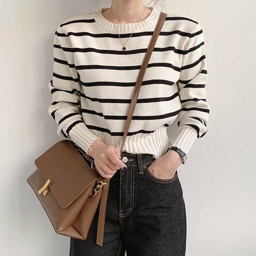 롱가디건 라운드 여성 스트라이프 여성니트 봄 WFL6IK1