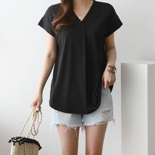 샵앤) 국산 여성 V넥 면 100 반팔 티셔츠 DAI-WSH-12055-블랙