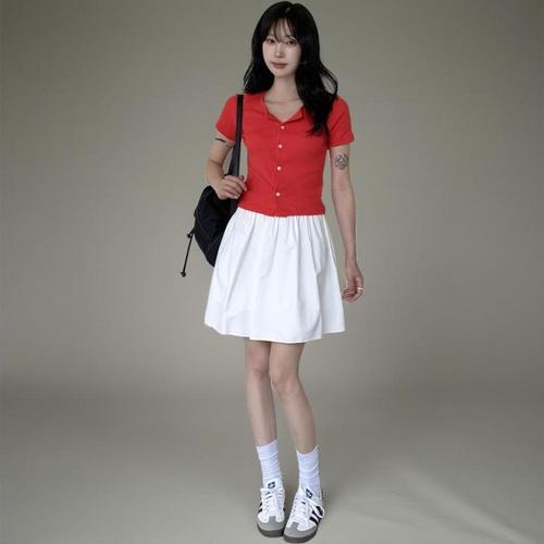 여자 여름 세미크롭 스트라이프 셔츠 카라 남방 5컬러 WEF1089