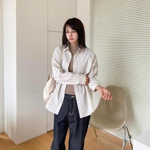 여성 루즈핏 디자인 세로 스트라이프 데일리 셔츠