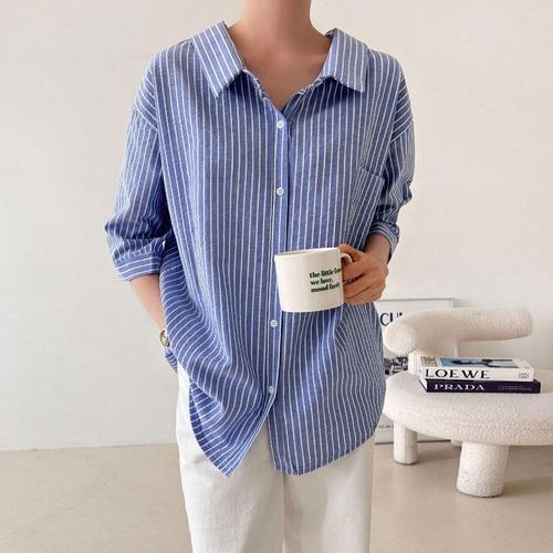 루즈 스트라이프 셔츠 블라우스 남방 MFNC-1003411