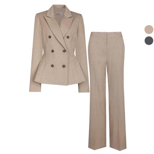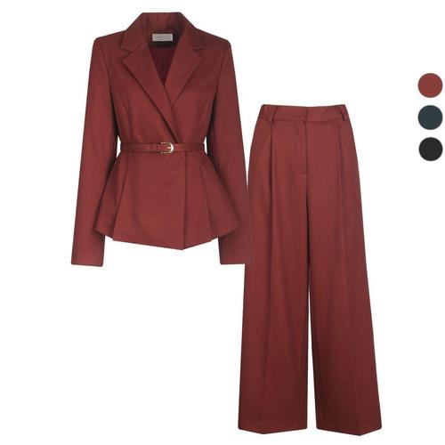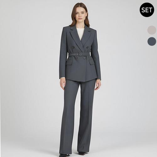 갤러리아_SET 여성 더블 벨티드 봄가을 정장 자켓+통팬츠 세트