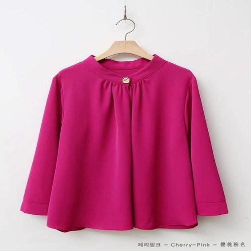 [옷자락]여자 봄 정장룩 중년여성 체리핑크 단추 블라우스