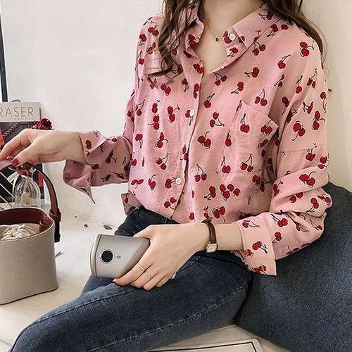 [셀러허브_여성트랜드패션]ONM 30대 귀여운 체리패턴 셔츠 블라우스 캐주얼