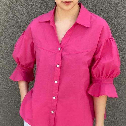 여자 중년 엄마옷 체리핑크 퍼프 블라우스