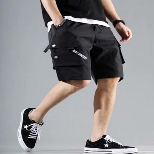 [셀러허브_여성트랜드패션]트레이닝 7부 밴딩 블랙 쿨링 반바지 포켓 팬츠 카고팬츠 카고 남성