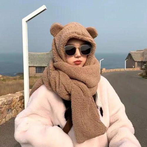 귀여운 목도리 모자 넥워머 뽀글이 학생 목도리 여성곰 모자 털 WFNABSV