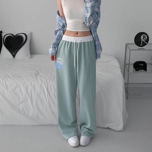 [신상오픈런]여성 배색 봄 트레이닝 프린트 통바지 힙한 밴딩 팬츠