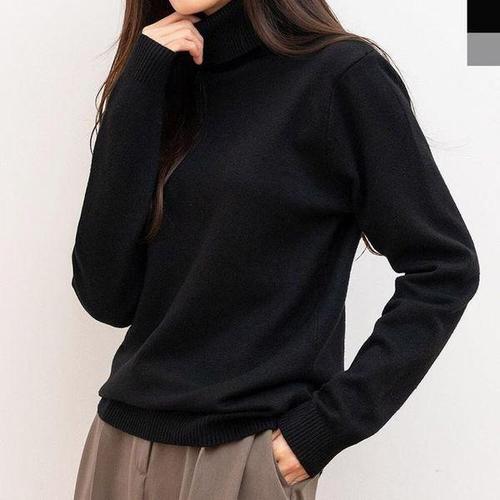 1+1 여성 목폴라 니트 스웨터 캐주얼 가을 겨울 도톰 터틀넥 상의 루즈핏 이너 니트티 기질 하이넥 니트 스웨터 2P CY
