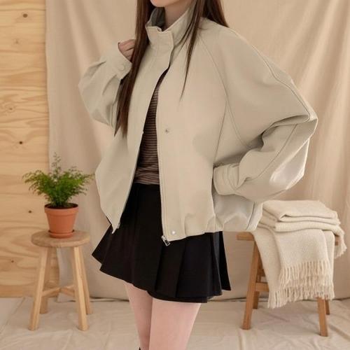 옷자락 / 여성 루즈핏 스탠드카라 크롭 가죽점퍼