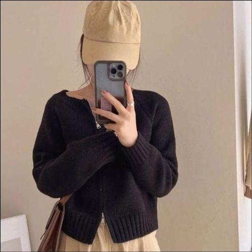 [에이치플러스몰]여성 라운드넥 투웨이 집업 니트 가디건 포근한 간절기 아우터