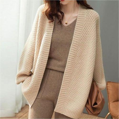 [에이치플러스몰]여성 노버튼 오픈형 루즈핏 와플짜임 니트 가디건 간절기 아우터