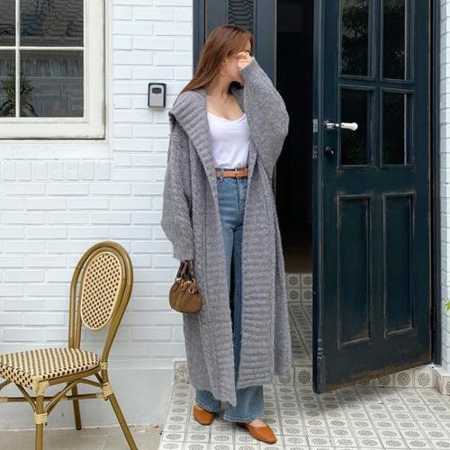 롱가디건 여성 루즈핏 후드 가을 겨울 오버핏 데일리 꽈배기 빅사이즈 베이직 니트가디건 캐주얼