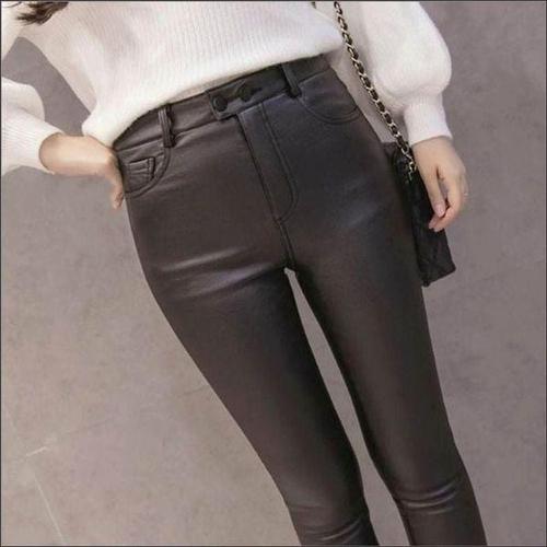 [에이치플러스몰]여자 스판 바지 인조가죽 약기모 페이크레더 스키니팬츠