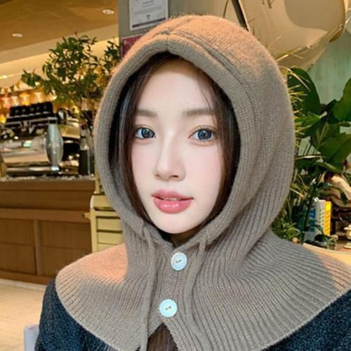 후드 바라클라바 겨울 여자 모자 넥워머 DD 12992 후드 단추 니트바라클라바 방한넥워머 모자워머