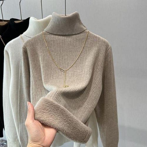 여성 하이넥 목폴라 니트 기모 안감 폴라티 터틀넥