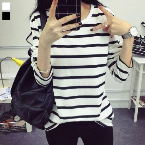 [엄지척]여성티셔츠 줄무늬 스트라이프 루즈핏 라운드티셔츠_19611232_667501