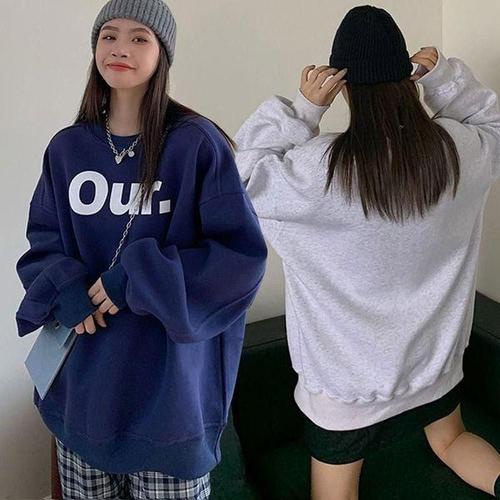 [에이치플러스몰]레터링 오버핏 기모 라운드티셔츠 여자맨투맨 여