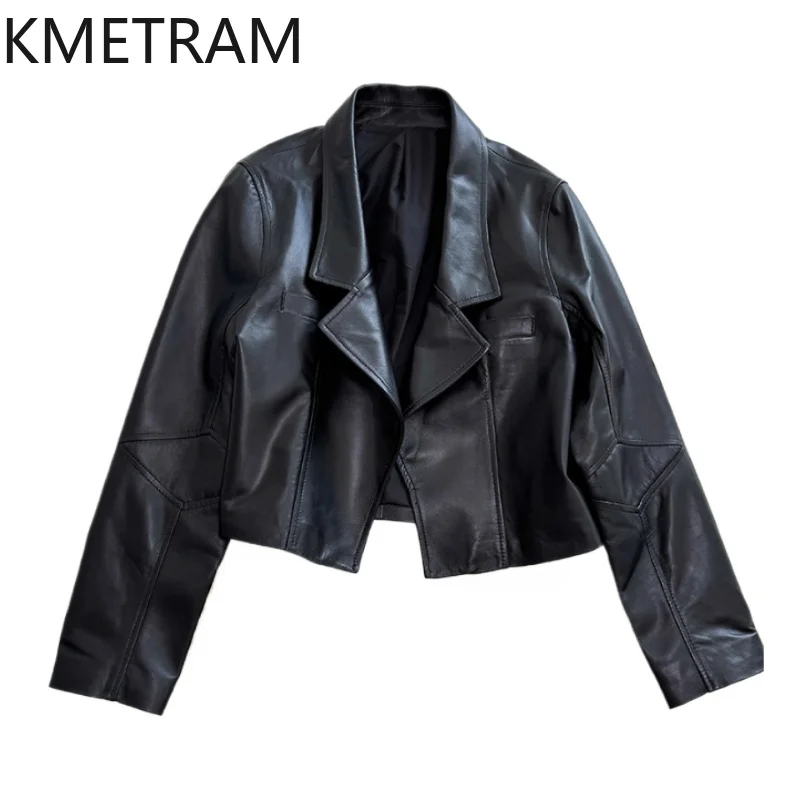 100% 최상층 양가죽 재킷 여성 블랙 숏 리얼 레더 재킷 신상 아우터웨어 가을 옷 2025 여성 베스트
