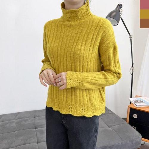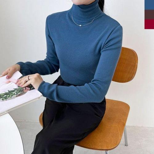 [의류] 목폴라니트 티셔츠 목폴라티셔츠 데일리 니트목폴라 여성니트티셔츠 골지