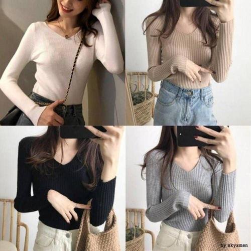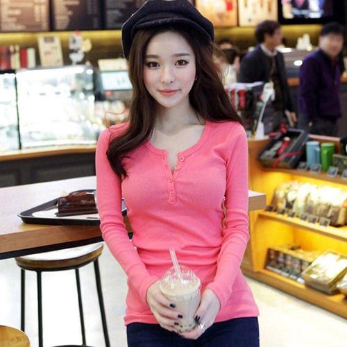 4014 카라 슬림핏 여성티셔츠 여자 긴팔티 무지티 기본티