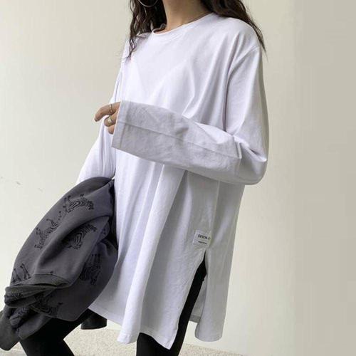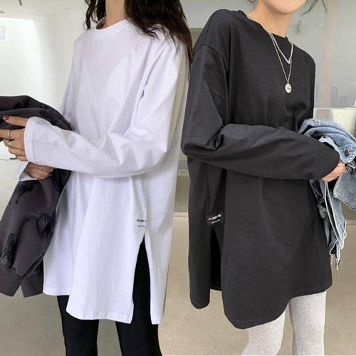 옆트임 라운드넥 긴팔 티셔츠 루즈핏 무지티 데일리 WEE928E