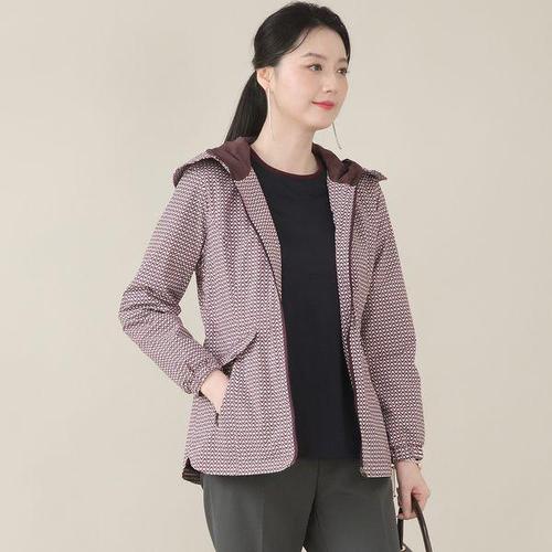 [애비뉴투지]엄마옷 모노그램 후드 안감 바람막이 지퍼 주머니 여성 봄 가을 간절기 하프 점퍼 J10557