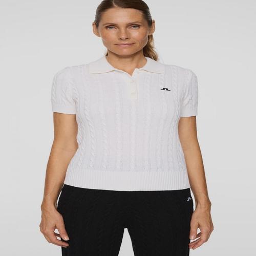 제이린드버그 여성 케이블 니트 울 셔츠 2026 화이트 반팔 kinsley